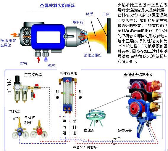 | 火焰噴塗系統: | 氣體控制器: | 多階段裝置對高壓燃氣和氧氣供應提供控制和管理。它有兩個計量表,一個用來指示壓力,另一個輸出壓力。 | |